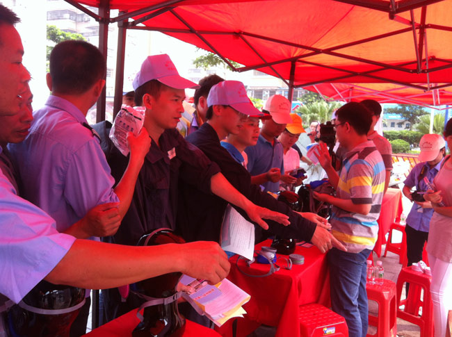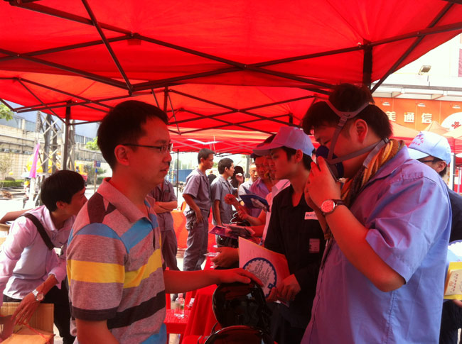 南核安防中國行之廣東肇慶站路演[微笑]    炎熱的夏天,南核安防按計劃戰酷暑,來(lái)到肇慶,同各企業(yè)代表及員工交流安全防護知識,加深安全防護意識,看到一線(xiàn)勞動(dòng)者對自身防護意識熱情的提高,熱點(diǎn)又算什么! 向勞動(dòng)者致敬!南核安防,將一如既往的為您提供更舒適的安全!